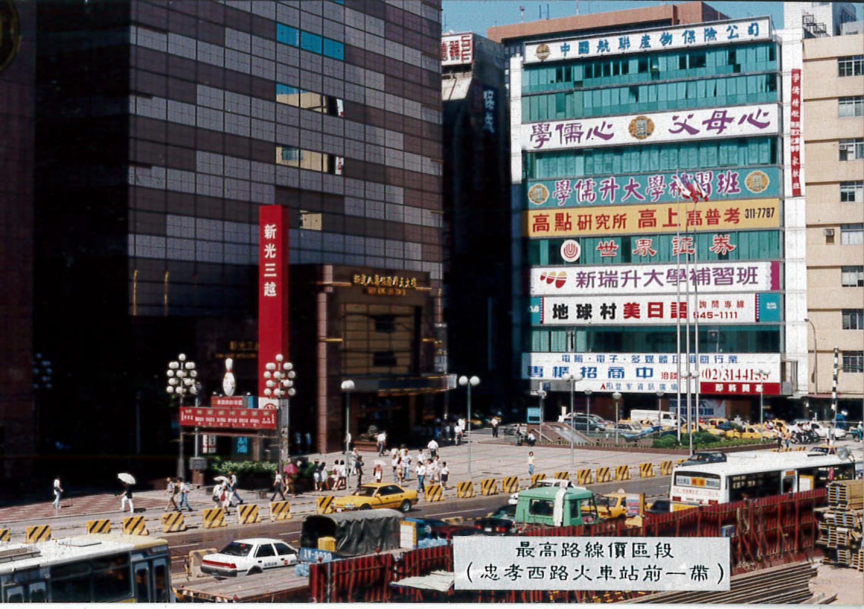 1995年臺北市最高路線價區段為忠孝西路臺北火車站前一帶,當時公告土地現