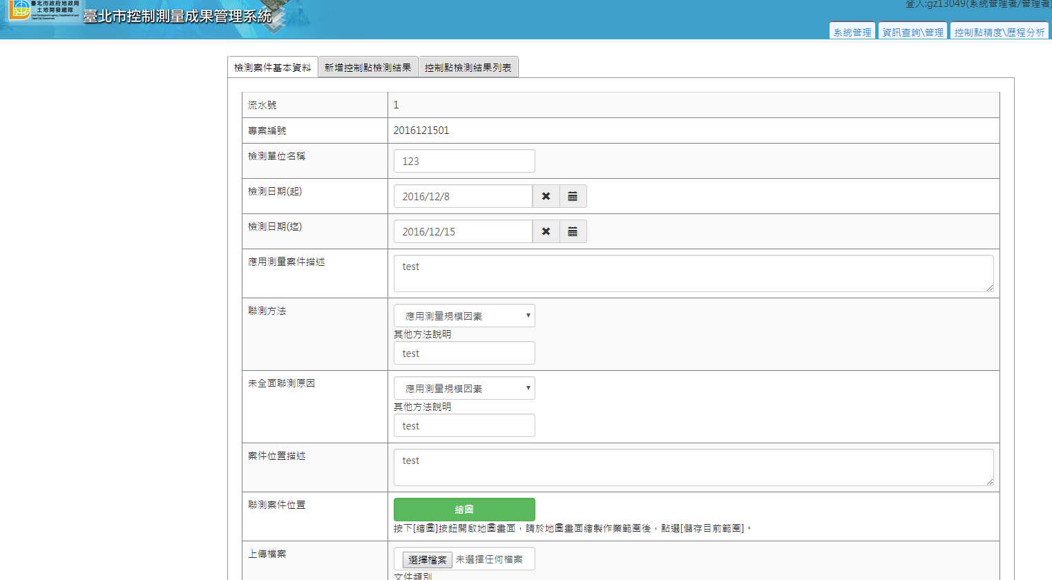 案件管理及精度分析:管控控制測量案件辦理進度與成果,並提供各機關間控制點歷次檢測及比較分析,落實測量成果管理及確保品質。