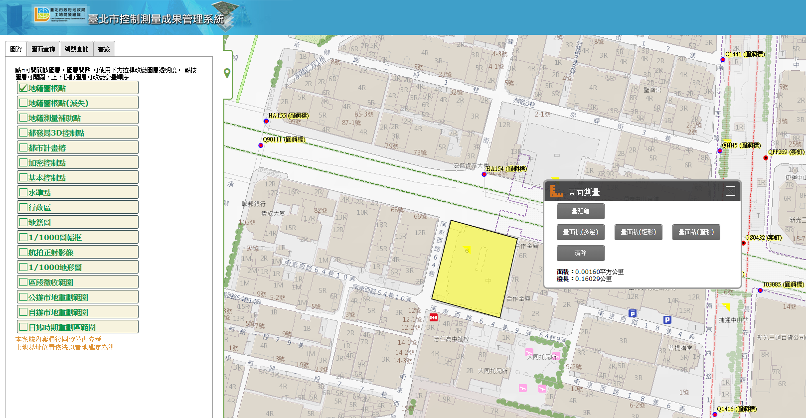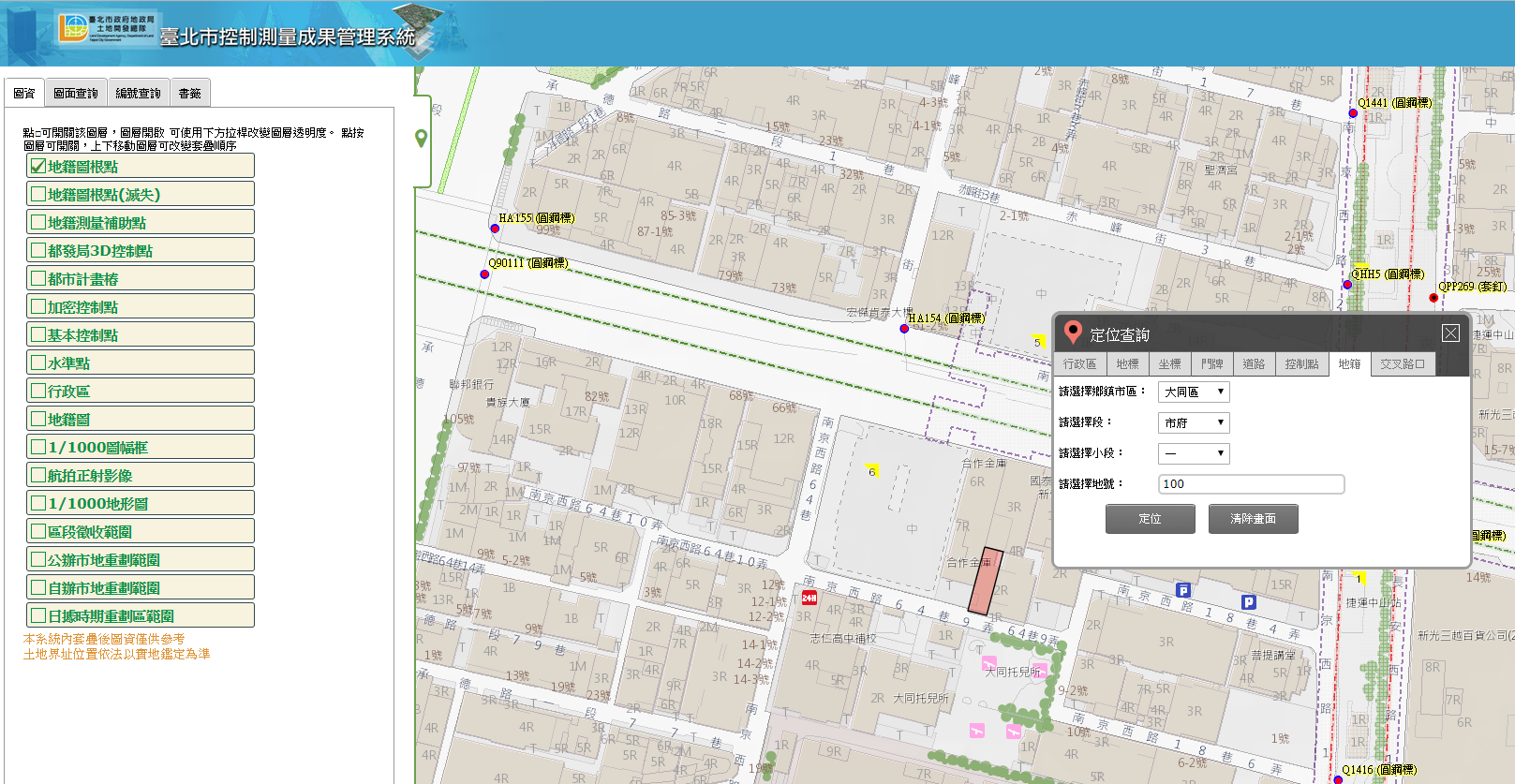 控制點是土地測量的重要依據,早期一般民眾不易取得相關資料,現在透過「臺北市控制測量成果管理系統」民眾可以輕鬆查調所有土地之位置及地界測量所依據之控制點。
