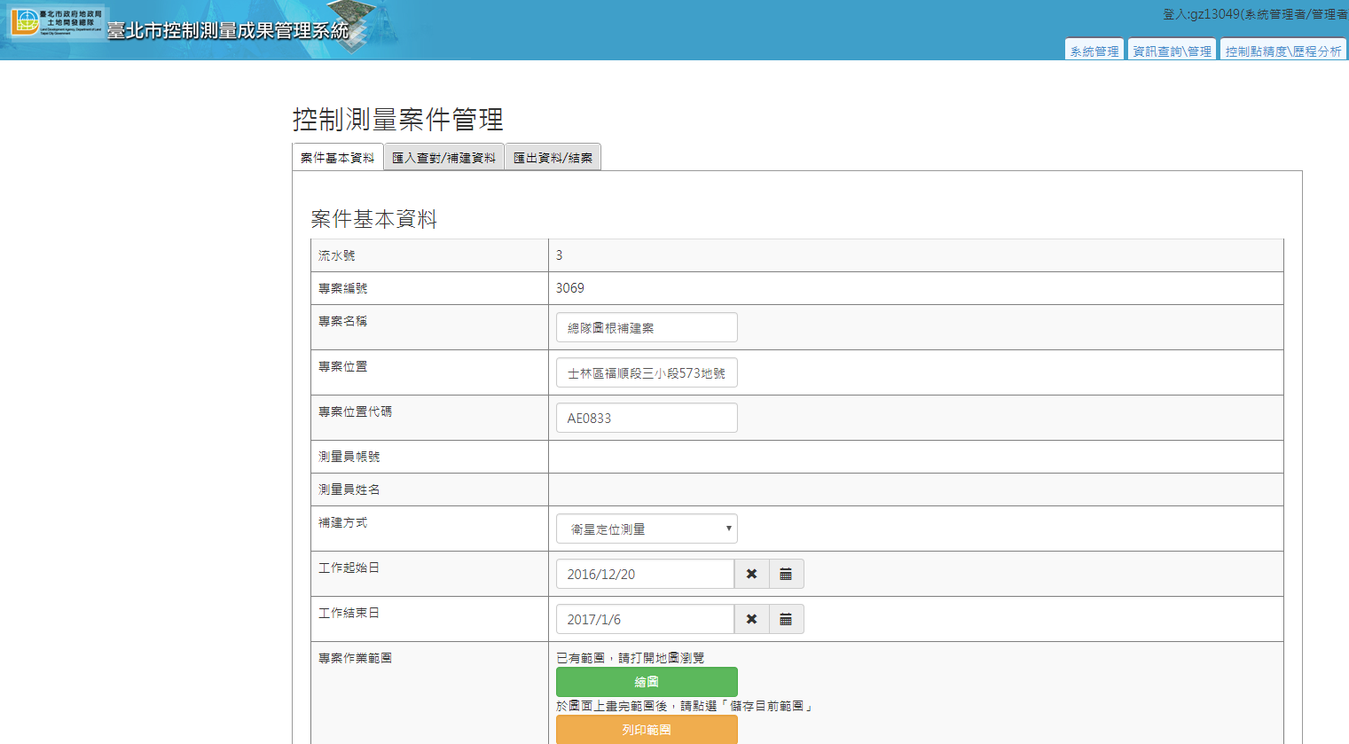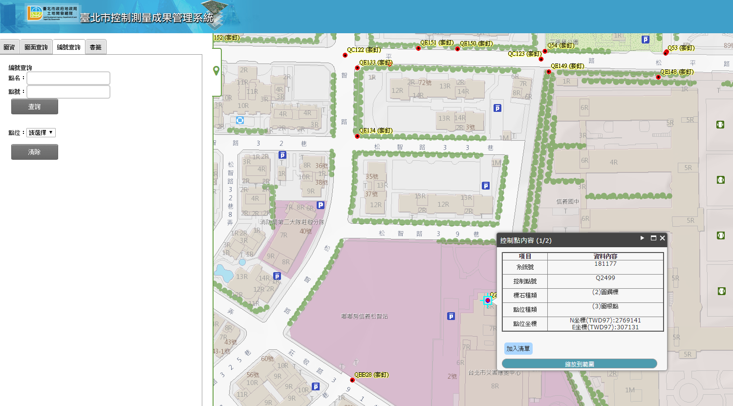 臺北市政府地政局土地開發總隊為臺北市加密控制點及圖根點之設置與管理機關,其中控制點及圖根點實為本市地政機關及民間測繪機構辦理測量行為的準據,而測量成果品質的優劣首先取決於控制測量成果的管理程度,為此導入資通訊系統輔助管理本市控制點為土地開發總隊重要施政方針。