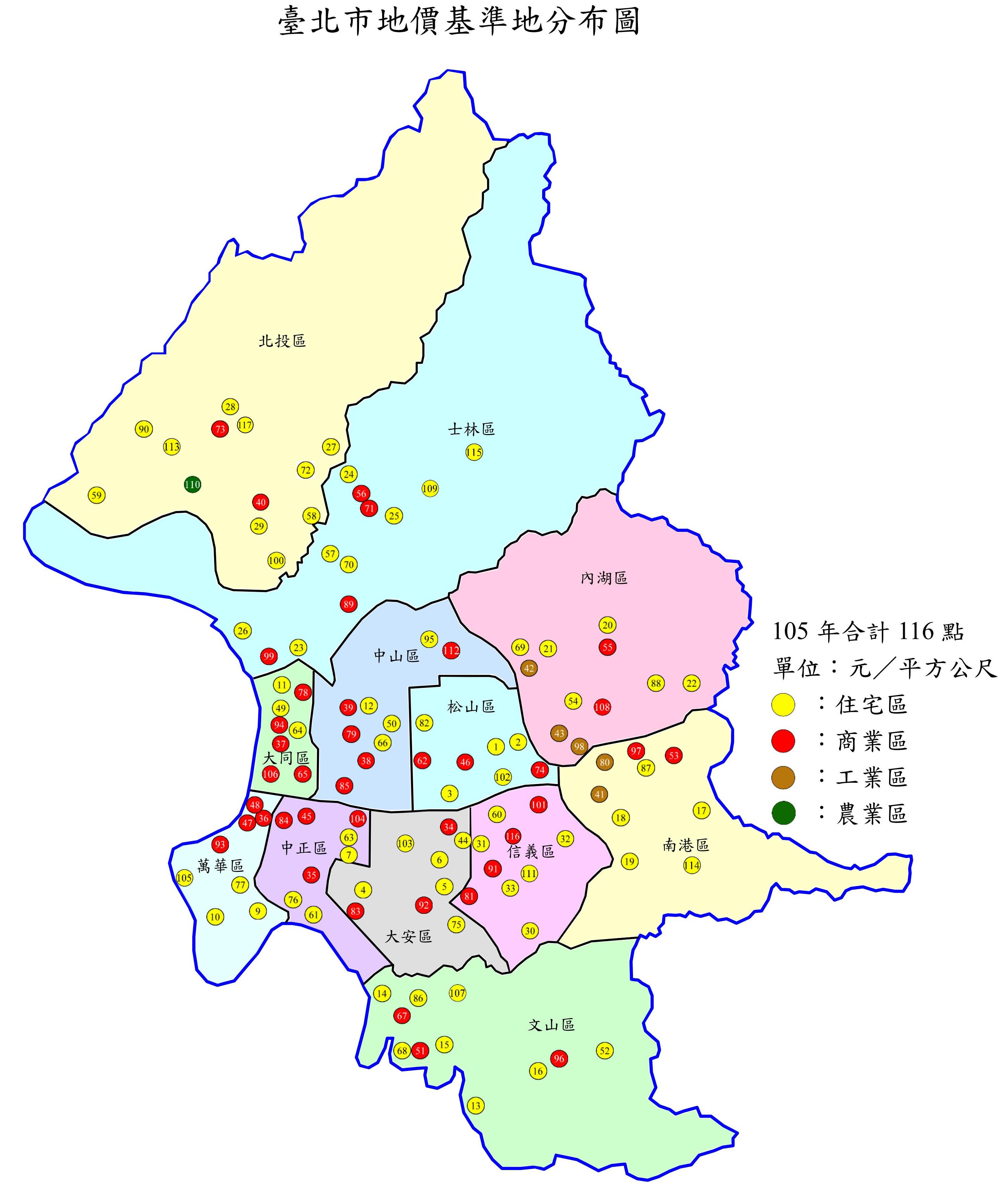 內政部自93年起請各直轄市及縣(市)政府試辦基準地,以地政機關為主體,依不動產估價技術規則之規定查估基準地地價,本市依內政部訂頒之「地價基準地選定及查估要點」及作業手冊規定,針對全市都市計畫範圍內住宅區、商業區、工業區等使用分區選定45點基準地進行查估,後因中央認為基準地制度之建立,對國內地價制度及估價人員之估價專業性皆有助益,並促進合理地價之形成,於94年—97年持續試辦,並逐年增加布點。