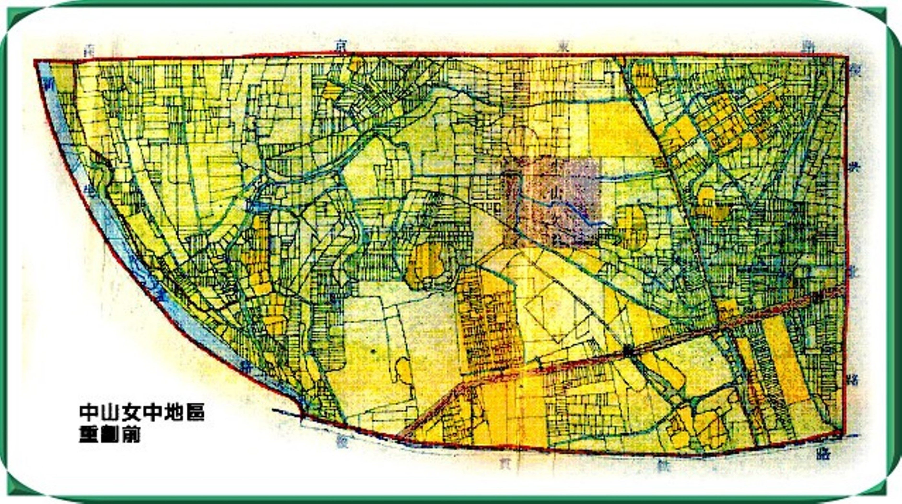 本重劃區屬本市日據時期辦理市地重劃之「中山女中」地區,東鄰復興南、北路,西至新生北路一段,南臨市民大道,北至南京東路二、三段,總面積約110.23公頃。